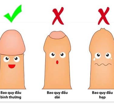 - Miệng bao quy đầu nhỏ, không thể lộn bao quy đầu được.
